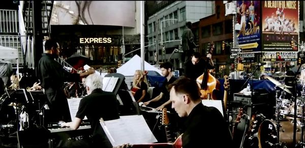 Conducting a number for the CURTAIN UP! Finale Concert in Time Square on WABC.